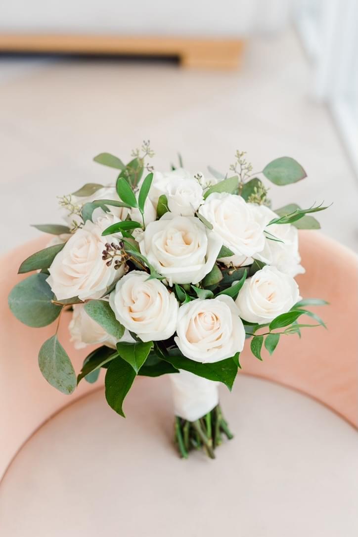 At Sima Flower Designer, we make beautiful bridal flowers. Our All Roses & Greenery Round Bouquet blends soft roses with fresh greenery in a neat, round shape. It’s classic, natural, and full of charm.